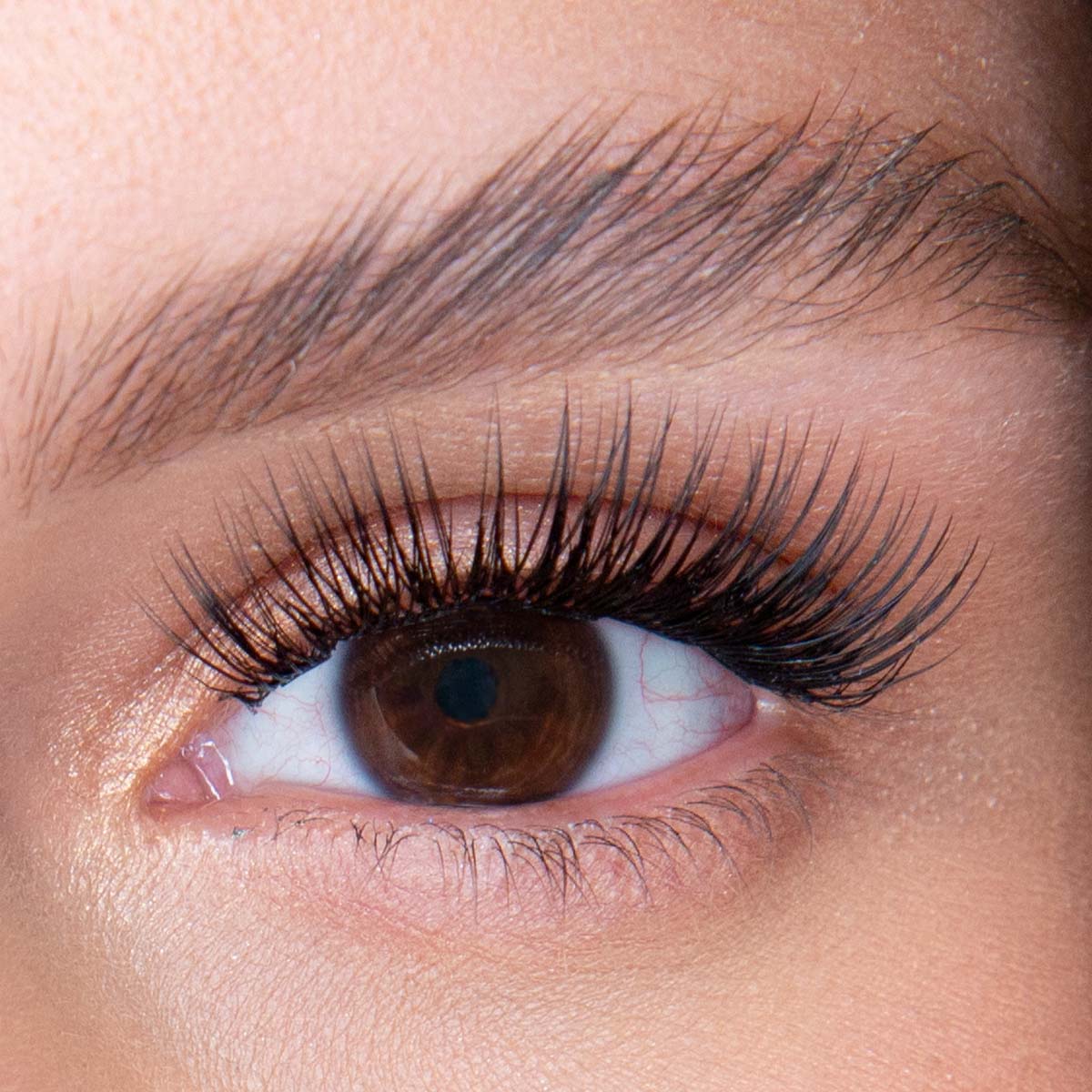 - Aplica una capa moderada de GLUE (cepillo de rímel) en tus pestañas naturales. Espera 3 segundos para que el adhesivo se vuelva pegajoso antes de aplicar los segmentos de pestañas.